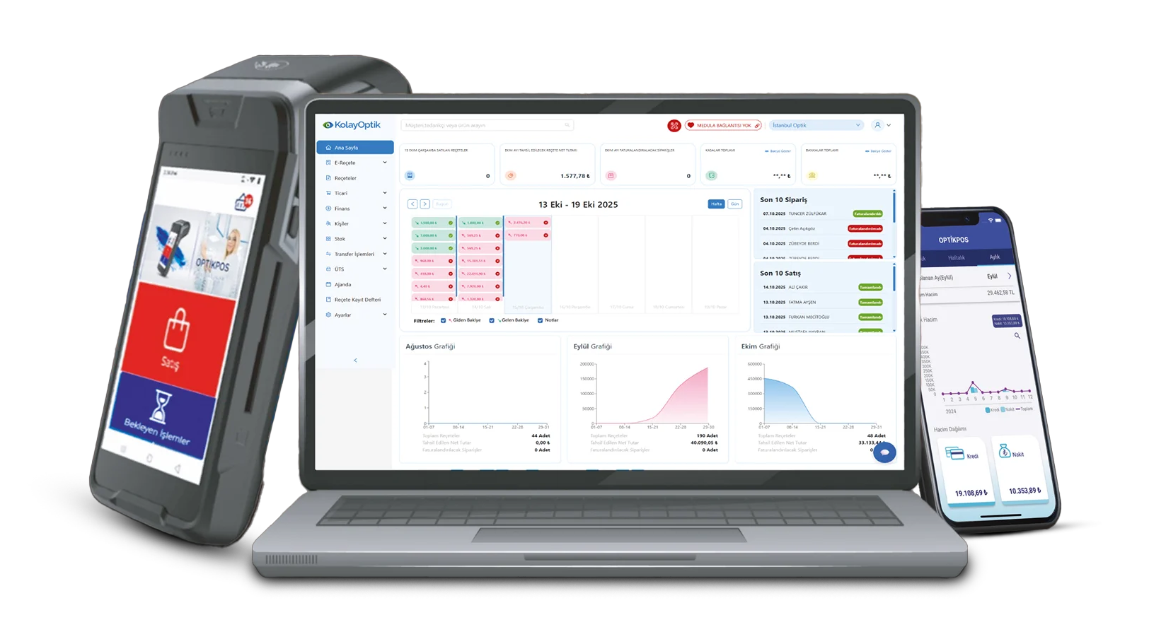 Envanterden e-Reçeteye, e-Faturadan POS’a; ÜTS ve MEDULA ile tam entegre, web tabanlı KolayOptik sayesinde tüm süreçlerinizi tek bir platformda hızlı, hatasız ve ölçülebilir şekilde yönetebilirsiniz.